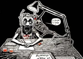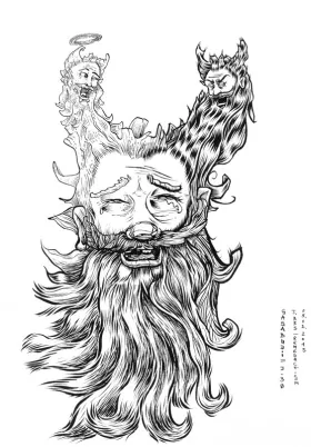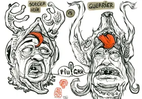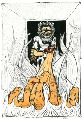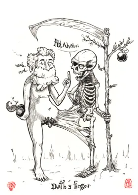 Illustration originale A3 "Le doigt de la mort - Vie et mort ou les frangins siamois"