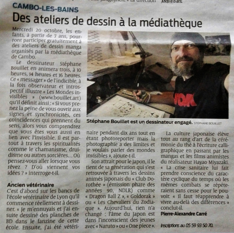 J'animerai 3 ateliers artistiques à la médiathèque de Combo-les-Bains le mercredi 20 octobre, dans la salle d’animation de la médiathèque à 10h, 14h et 16h.