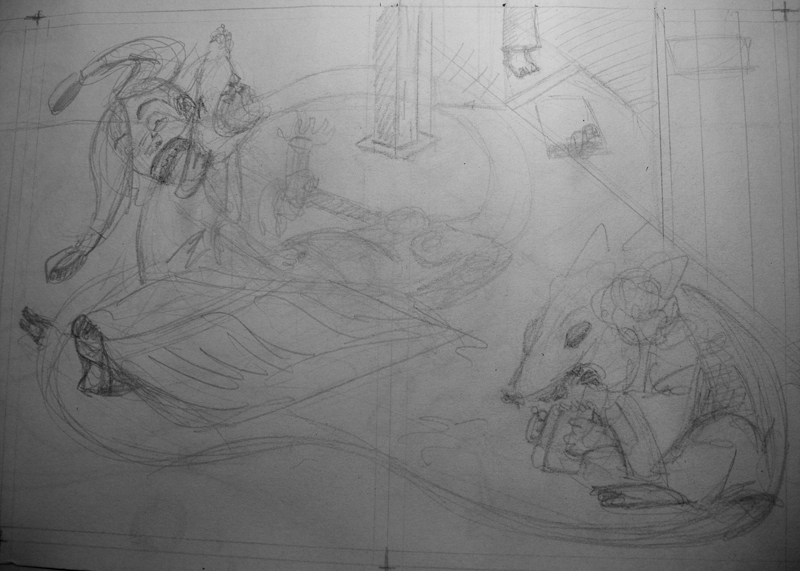 - test d'un matériel: ben ouais, tester du papier alors qu'on doit aller vite, ça le fait pas ! Surtout si le papier absorbe que dalle et que le thème japonais impose un trait nerveux et rapide.