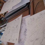 J'utilise une table lumineuse pour encrer les illustrations au Rotring, ce qui permet facilement de déplacer des éléments, ajouter des dtails etc…