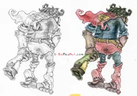 Superman: MAD Illustration Dessin de Superman pour MAD (Man and Animal Deviances): essai de trait et mise en couleur