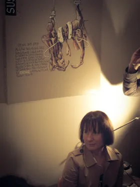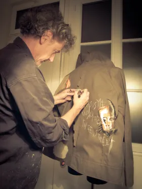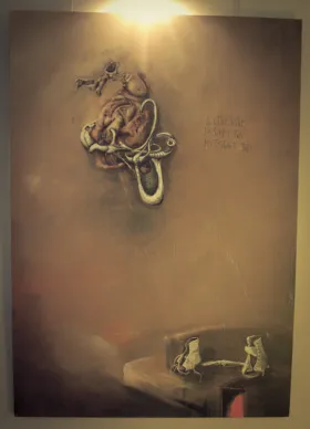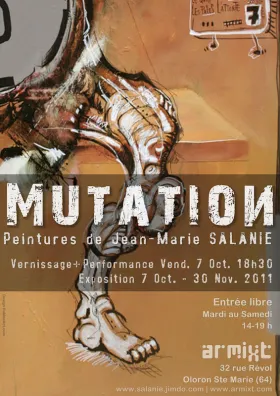 Jean-Marie Salanié Graphisme Affiche de l'exposition de peintures Mutation(s) de Jean-Marie Salanié. Journal de bord d'une personne subissant les désordres et dommages dues aux effets radioactifs.
