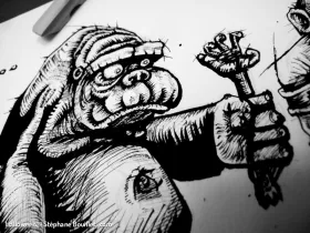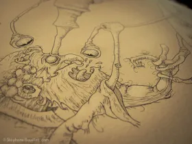Affiche et Flyer de l'exposition "Trick or Treat", illustrations de Stéphane Bouillet sur le thème d'Halloween, et présentation du projet Sasabudi, Same Same But Different, vidéo en Time Lapse d'un au