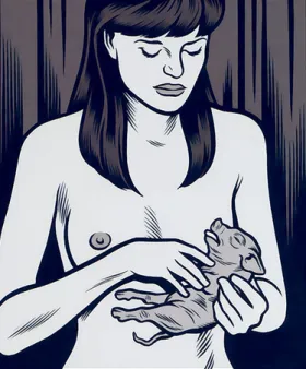 Portrait en noir et blanc du peintre Salvador Dali et de son ocelot Babou.