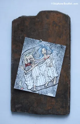 ILLUSTRATION : une femme fait des ricochet à la surface du réel, avant de sombrer dans le néant et se transformer en squelette. TEXTE : 6 mois. Enfin un peu plus même.