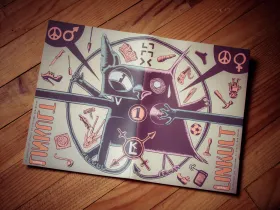 Réveil dans un lit avec une gueule de bois, au coté d'une femme nue, qui tape sa cigarette dans notre bouche dont de la bave sort. L'homme a les cheveux vert et la femme les cheveux bleus.