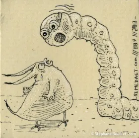 Q.I. est une des mascottes du fanzine Linkult, un piaf genre canari japonisé, pas très malin, quoique...