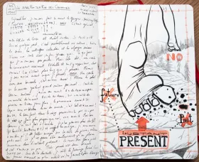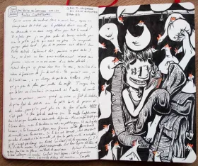 La guerre fratricide Illustration Ecriture Sketchbook analytique. Association de textes et de dessins les illustrant.