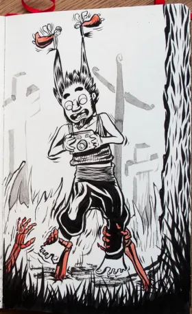 La colline a des yeux Illustration Ecriture Sketchbook analytique. Association de textes et de dessins les illustrant.
