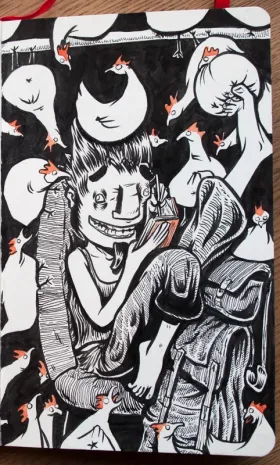 Les gobeurs foutugraphiques Illustration Ecriture Sketchbook analytique. Association de textes et de dessins les illustrant.