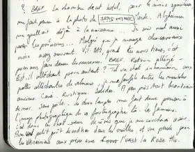 Le barefooter fou des Carpates Illustration Ecriture Sketchbook analytique. Association de textes et de dessins les illustrant.