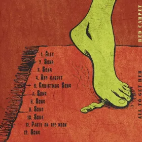 Un pied de gorille / singe tien un verre vide sur un tapis rouge, alors qu'un pied nu écrase une cigarette