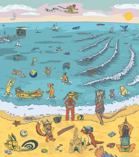 Apéro nucléaire sur Mars Illustration Spectacle nucléaire terrien vu depuis la planète Mars, lors d'un apéro festif.