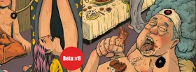 Orgie sexuelle et alimentaire entre yakuza et geishas Illustration Orgie sexuelle et alimentaire - couverture du fanzine Beta #8