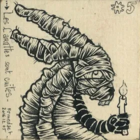 Momie Lapine Illustration Une lapine momie emballée de bandelettes tient une bougie, se frayant un chemin dans les cryptes d'une pyramide d'Égypte…