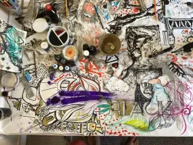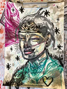 Mata Sri Priya a donné une conférence à Oloron Sainte Marie le 6 septembre. J'en ai profité pour tester le sketchnote sur mon tout nouveau sketchbook Leuchtturm 1917.