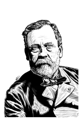 Louis Pasteur Illustration L'oracle de Pasteur Description Illustration du portrait de Louis Pasteur en noir et blanc, couleur, carte d'oracle, avec deux citations :
