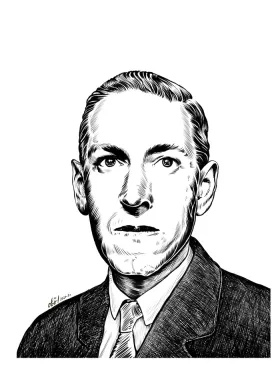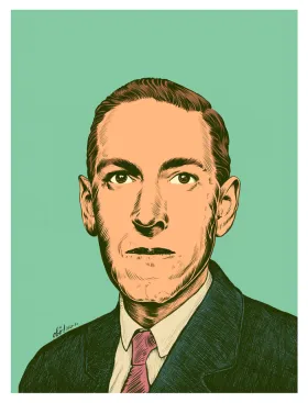 Howard Phillips Lovecraft Illustration Illustration du portrait de l'écrivain fantastique Howard Phillips-Lovecraft en couleur, noir et blanc.