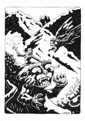 La sorcière chat et le Fantôme de Dracula Illustration Une sorcière chevauchant un chat est attaquée par le fantôme de Dracula métamorphosé en chauve-souris. et s'apprête à lui lancer une boule de feu.