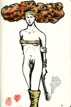 Femme nue de dos, avec des énormes seins, et un bronzage laissant entrevoir une marque de culotte...