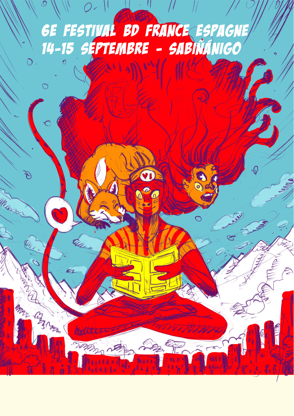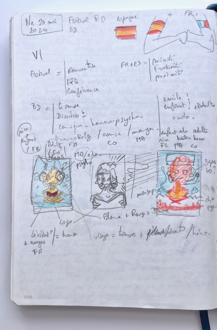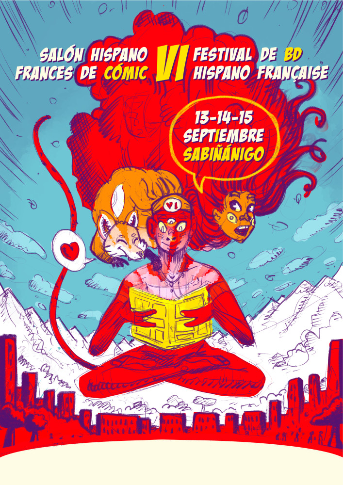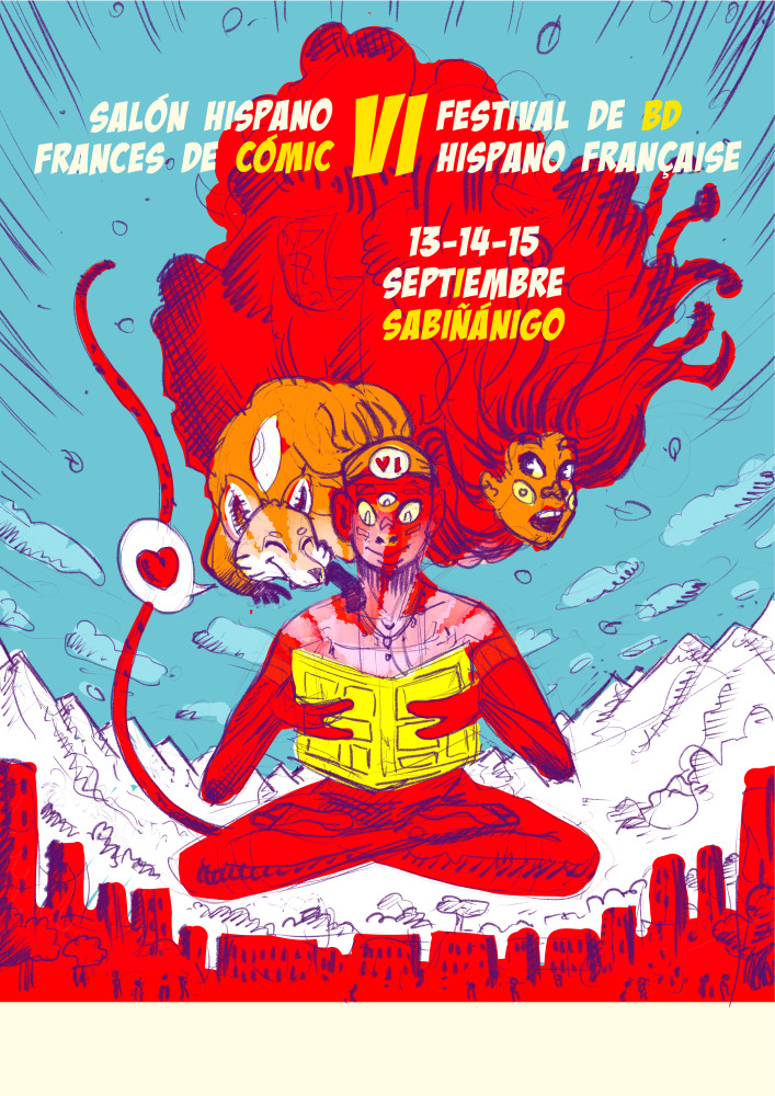 J'ai fait l'affiche du festival franco espagnol de la BD 2024, dont voici l'encrage et les diverses versions.