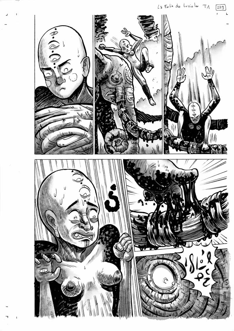 Planche originale de la page 229 du manga La Jungle Maudite, tome 1 de la série La Folie des Lucioles, offert avec cette planche.