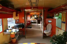 On retrouve un petit bout des poutres IPN rouges qui constituaient la structure portante. Des petits chapeaux protègent désormais ces reliques, dont la dernière a du être enlevée il y a 4 à 6 ans de cela. Dommage, j'aurais bien passé quelques jours dans une de ces bulles au milieu des sapins et entouré ds Pyrénées...