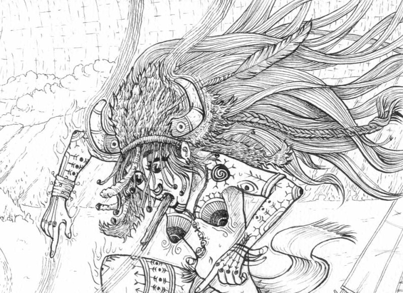 Lors d'une nuit de pleine lune, à l'équinoxe d'automne, une femme chamane nord-amérindienne invoque l'esprit bison par une danse autour d'un feu sacré. Il lui donne la force nécessaire pour invoquer ensuite les énergies des quatre points cardinaux, puis du ciel.
