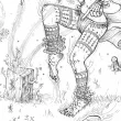 Puis elle plante des bûches à même l'herbe, avant de leur redonner spirituellement vie et de les faire pousser.