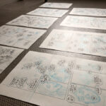 L’image 2 montre aussi le papier manga IC-INC que j’utilise et qui est margé bleu : possibilité de tracer des paralèlles facilement, mais c'est encore plus simple avec une règle et une équerre (taille ≥ largeur de la feuille).