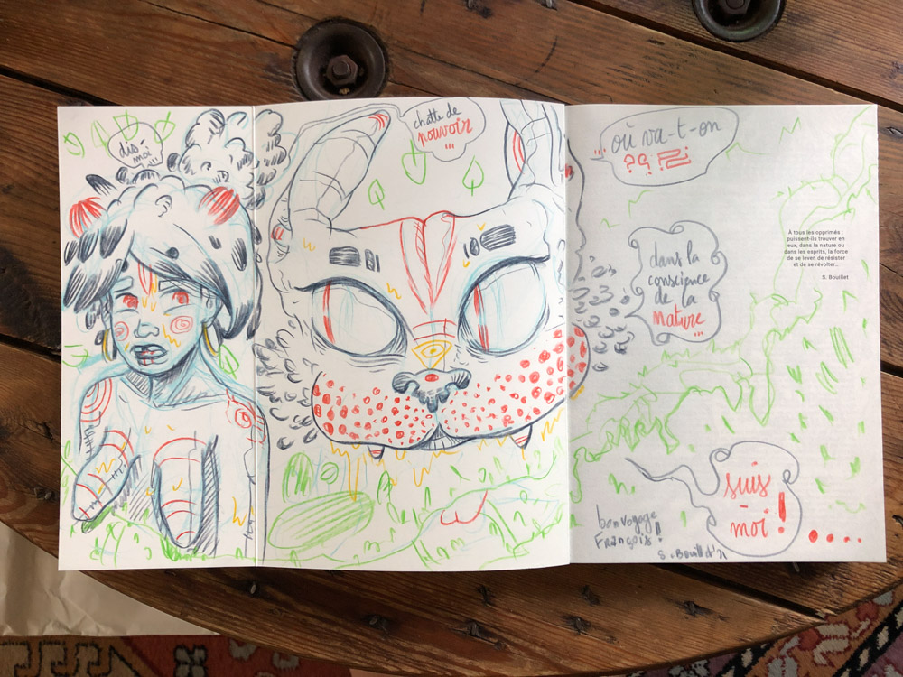 Voici quelques dédicaces faites au crayons de couleur Polychromos sur les albums de la trilogie La Folie des lucioles T1 La Jungle maudite.