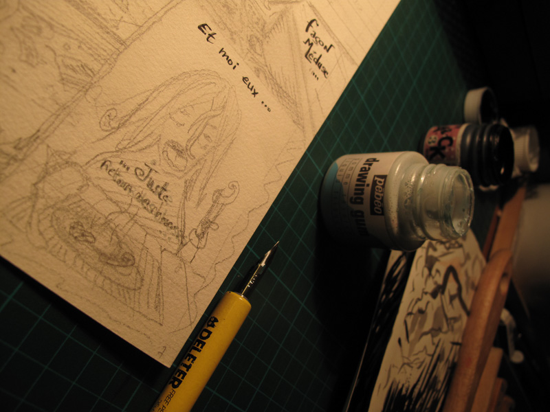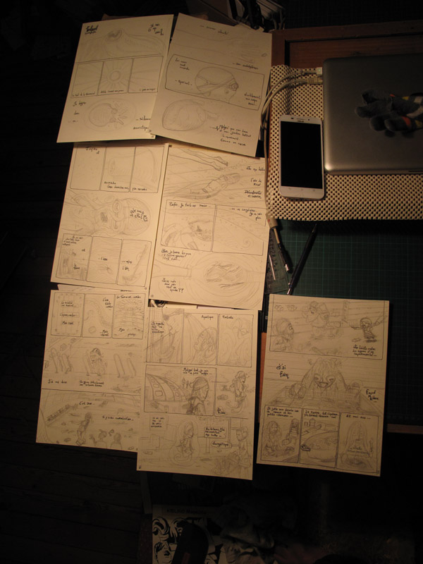 Work in progress des premières pages de la BD FoolPool, qui sortiront dans le deuxième numéro du fanzine Beta !