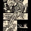 Ces planches ont traîné en longueur puisqu'après avoir fait le scénario, je me suis cassé l'os scaphoïde de la main droite (celle qui dessine), et on m'a ré-inséré les ligaments scapho-lunaire et immobilisé le poignet avec 2 broches et une attelle. C'est donc avec une appréhension particulière que j'ai dessiné l'amputation de mon personnage.