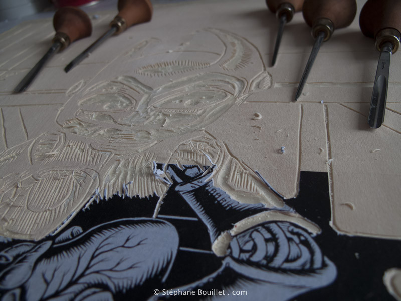 On peut ainsi être très précis, ou se détacher de l'image d'origine pour utiliser toute la panoplie d'effets offerts par la gravure sur bois