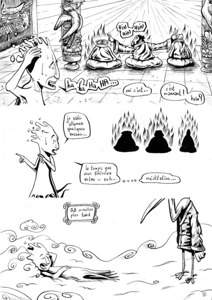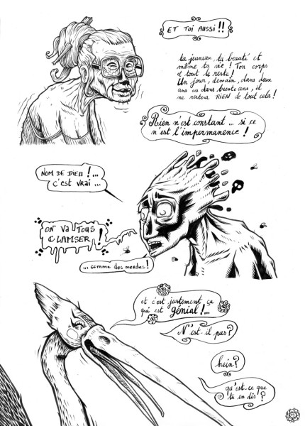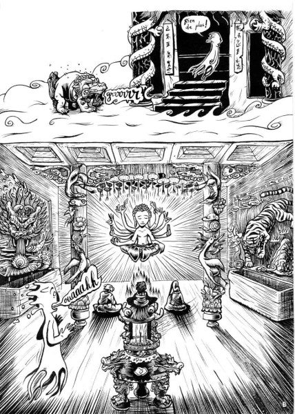 Par S. BOUILLET, 15 février, 2017 Publié dans Bande dessinée & Manga Créé avec Encre de Chine Papier Fabriano (300g/m2) Papier manga (Deleter Ruler C - 135gr/m2) Papier manga (IC-Inc - 135gr/m2) BD Révélation - chap.2 Après avoir discuté dans les nuages avec un tigre et un chien, Sam part à la découverte d'un temple et de ses occupants… Voir plus de Bonheur Bouddhisme Mort Plaisir Révélations Beta #3