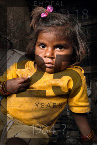 Blue Moon Colony, 50 meters from the factory. Tajmin was born with a cleft palate that prevented her from nourishing herself normally. She was one of eight children, sent by the Chingari Trust to St. Stephens Hospital in Delhi, for operations to correct their deformities. All of the interventions were successful. This is Tajmin three weeks after the operation.