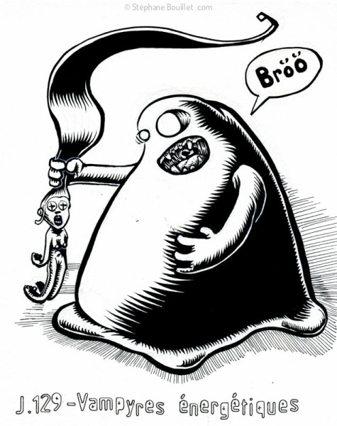 A contrario, il est des personnes qui sont des énergivores... Ils ou elles se nourissent de votre énergie. Contrairement aux personnes énergisantes qui savent donner sans recevoir (et c'est bien là une des caractéristiques du magnétisme ou Reiki ou... ), ces monstres gluants absorbent sans donner et se remplissent de notre propre énergie ! Ben merde alors ! En les quittant, on se sent vidé et même vide, dépressurisé et déprimé: plus d'énergie... On rumine parfois dans notre coin en se demandant ce qui cloche... Cherchez plus ! C'est le streumon qui s'est gavé ! Dommage que ces énergivores n'aient pas trouvé une source d'énergie autre que nous, une source connecté à l'univers, au tout. Dommage aussi qu'elles ne se rendent pas compte de leur état de suceurs...