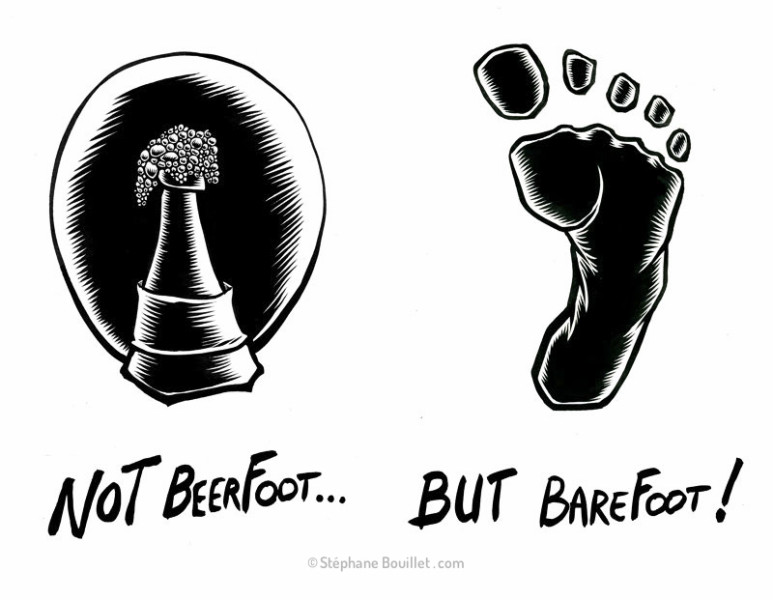 ILLUSTRATION : Bière et ballon de foot ? Non ! Barefoot ! Le pied... nu !