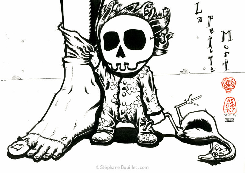 Bon, une fois n'est pas coutume, le billet d'hier étant pas mal fourni en images, je choppe l'image du père (une fois n'est pas coutume j'ai dit), trimbalant tout sourire son gosse sur les épaules. Enfin, sa mort, j'veux dire... EDIT: Et donc, vivre avec sa mort, finalement, ne serait-ce pas la meilleure manière de vivre en pleine conscience, l'ici et maintenant ? Le présent ? Sans forcément se projeter constamment dans le futur en faisant des plans sur la comète, ce qui, par ailleurs, n’empêche pas de faire quand même des projets sur le long terme, mais qui pourraient rester dans un certain flou, et donc non stressants... des idées, comme ça quoi...