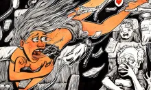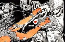 légende : une femme se fait attirer dehors par la mort faucheuse lors d'un crash aéronautique
