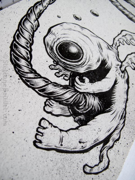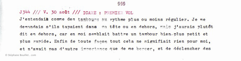 J'entendais comme des tambours au rythme plus ou moins régulier. Je me demandais s'ils tapaient dans ma tête ou en dehors, mais j'aurais plutôt dit en dehors, car en moi semblait battre un tambour bien plus petit et plus rapide. Enfin de toute façon tout cela ne signifiait rien pour moi, et n'avait pas d'autre importance que de me bercer, et de déclencher des mouvements tantôt saccadés et amples, tantôt imperceptibles et cycliques, comme le balancier du temps dont j'avais déjà pleine conscience. Des bruits sourds et un peu plus lointains se rajoutaient parfois, malmenant mon environnement liquide qui devenait un peu plus chaud et plus acide. C'est dans des moments désagréables comme ceux-là que je sentais mes petites excroissances dorsales remuer et s'agiter, brassant et rafraîchissant mon biotope. J'étais convaincu que c 'était une partie importante de moi-même, et que j'étais indubitablement fait pour ça: voler.