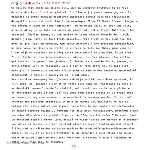 [EDIT] Pour en revenir au pourquoi du titre "Fleur du mal", c'est que après avoir fait des monstres, même sympathiques, pour le J351, assez noir et plein de traits, j'ai voulu inverser la tendance et revenir à un style épuré et finalement très zen, proche - sans doute- d'un des buts des peintures japonaises: trouver la sérénité par l'art du trait, indissociable de la calligraphie.