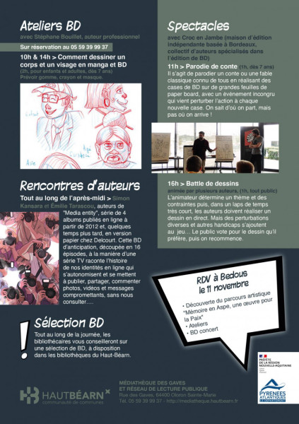 Je donnerai un atelier manga à 10h et un à 14H à la médiathèque des gaves à Oloron Sainte Marie