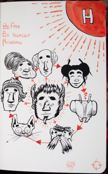 Sketchbook analytique. Association de textes et de dessins les illustrant. ± 1 texte et 1 dessin par jour Ou comment noircir le papier pour blanchir son âme, jeter mots et maux pour s'alléger le cœur, le corps, la tête et l'esprit. NB: ni le texte ni les dessins n'ont vocation à être des chefs-d'œuvre ou des prouesses techniques ou lyriques. C'est juste une méthode de progression.
