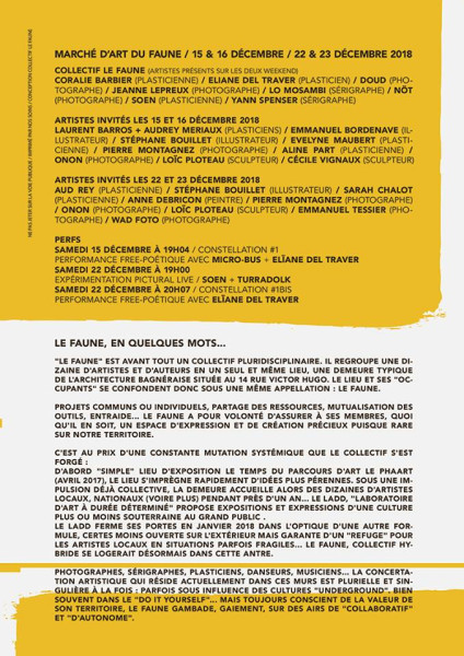 #Sculptures #Sérigraphie #Photographie #Dessin #Gravure #Performances etc.> Entrée libre