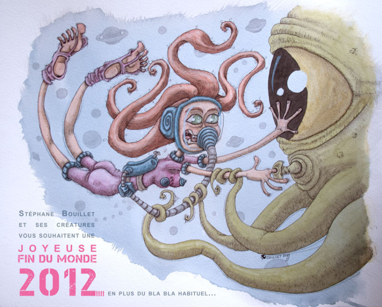 Par S. BOUILLET, 30 décembre, 2011 Publié dans Illustration Stéphane Bouillet et ses créatures vous souhaitent une joyeuse fin du monde 2012 ! (en plus du blabla habituel) Voir plus de Lili 2012 Theories Carte de voeux