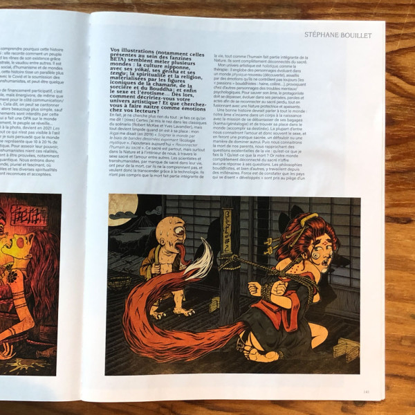 Vos illustrations (notamment celles présentes au sein des fanzines BETA) semblent mêler plusieurs mondes : la culture nipponne, l’humain fait partie intégrante de la Nature. Ils sont complètement déconnectés du sacré.