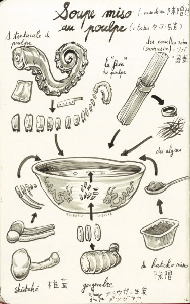 Le poulpe, mangez-le avant qu'il ne vous mange ! Grâce à cette superbe recette de miso soup au poulpe ! Champignons, gingembre, nouille soba, miso, eau et … poulpe bien sûr ! Et ne vous laissez pas avoir par ses petits yeux de merlan frit, que dis-je ? de mollusque !