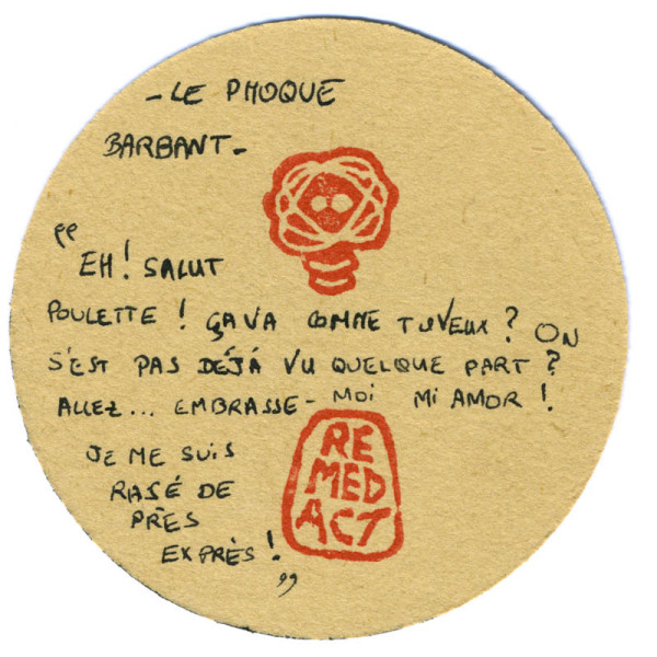 Par S. BOUILLET, 2 janvier, 2015 Publié dans Illustration Créé avec Encre de Chine Pinceau Encre blanche Rond (ø 8cm) Pastille ronde "Eh, salut poulette ! Ca va comme tu veux ? On s'est pas déjà vu quelque part ? Allez, embrasse-moi mi amor ! Je me suis rasé de près exprès !" Voir plus de Animal Phoque Pet(s) Illustration jeunesse
