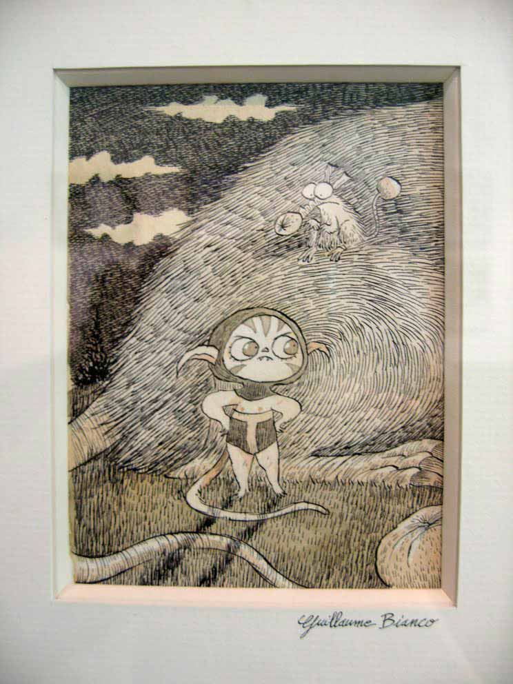 … Renverser une bouteille d'encre sur sa planche (cf image de Gris Grimly) est un désastre qui arrive assez peu avec un rotring, pour peu qu'on ne le remplisse pas juste au dessus du dessin sur lequel on travaille. Mais bon, en utilisant des encreurs ou des petits contenants et en faisant gaffe un minimum, ça devrait aller. Vous avez pas encore Parkinson ? Si ?